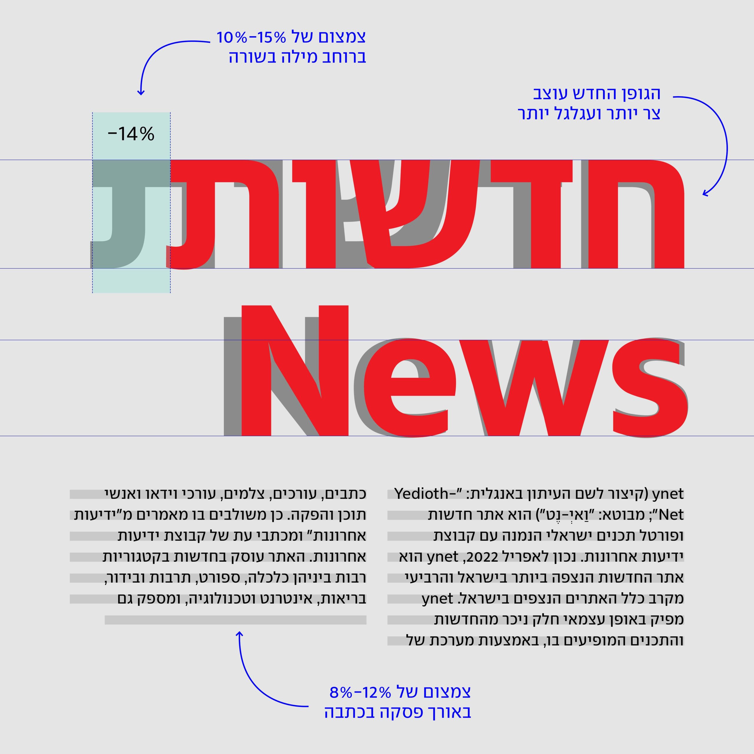 בשקט ובסטייל מאוד לא מתאמץ, אחד מאתרי החדשות הבולטים ביותר כיום עבר מתיחת פנים משמעותית ומועילה לכולנו. אתר החדשות ynet עדכן את הגופן בו השתמש מאז ההשקה המחודשת לפני כמעט 3 שנים, לגופן שעוצב במיוחד בשבילו על ידי סטודיו RAG ובהובלת סטודיוNetcraft מבית אלעד מערכות.